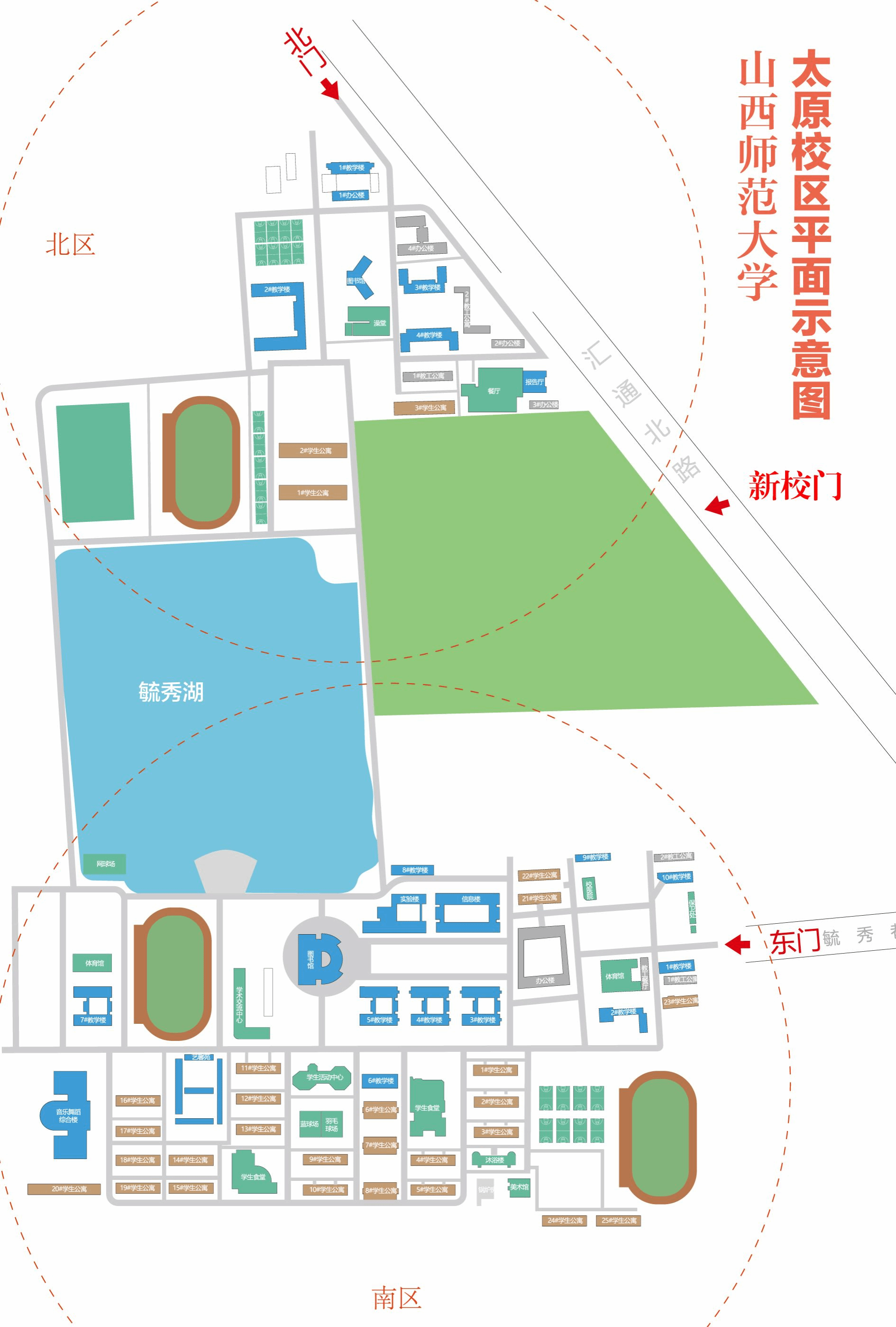 1.山西师范大学北校区公交站紧邻山西师范大学北门,靠近山西师范大学新校门。考生下车后可通过山西师范大学新校门、北门直接进入北校区,步行至南区教学楼的时间约为20分钟。